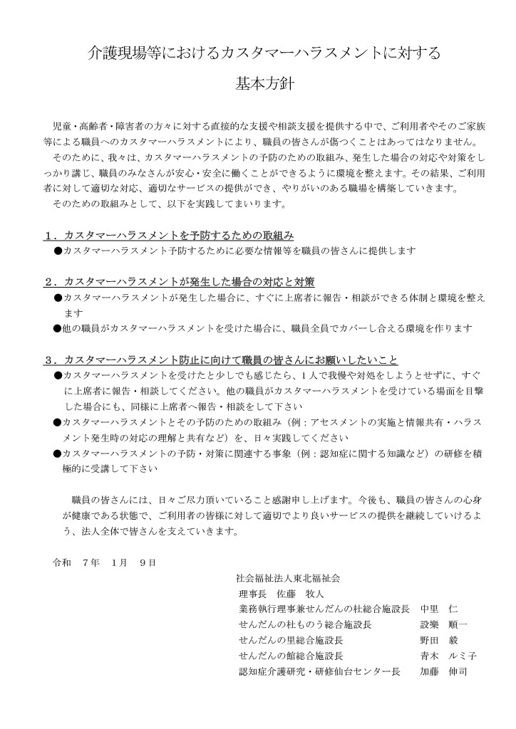 介護現場等におけるカスタマーハラスメントに対する 基本方針(04/24)