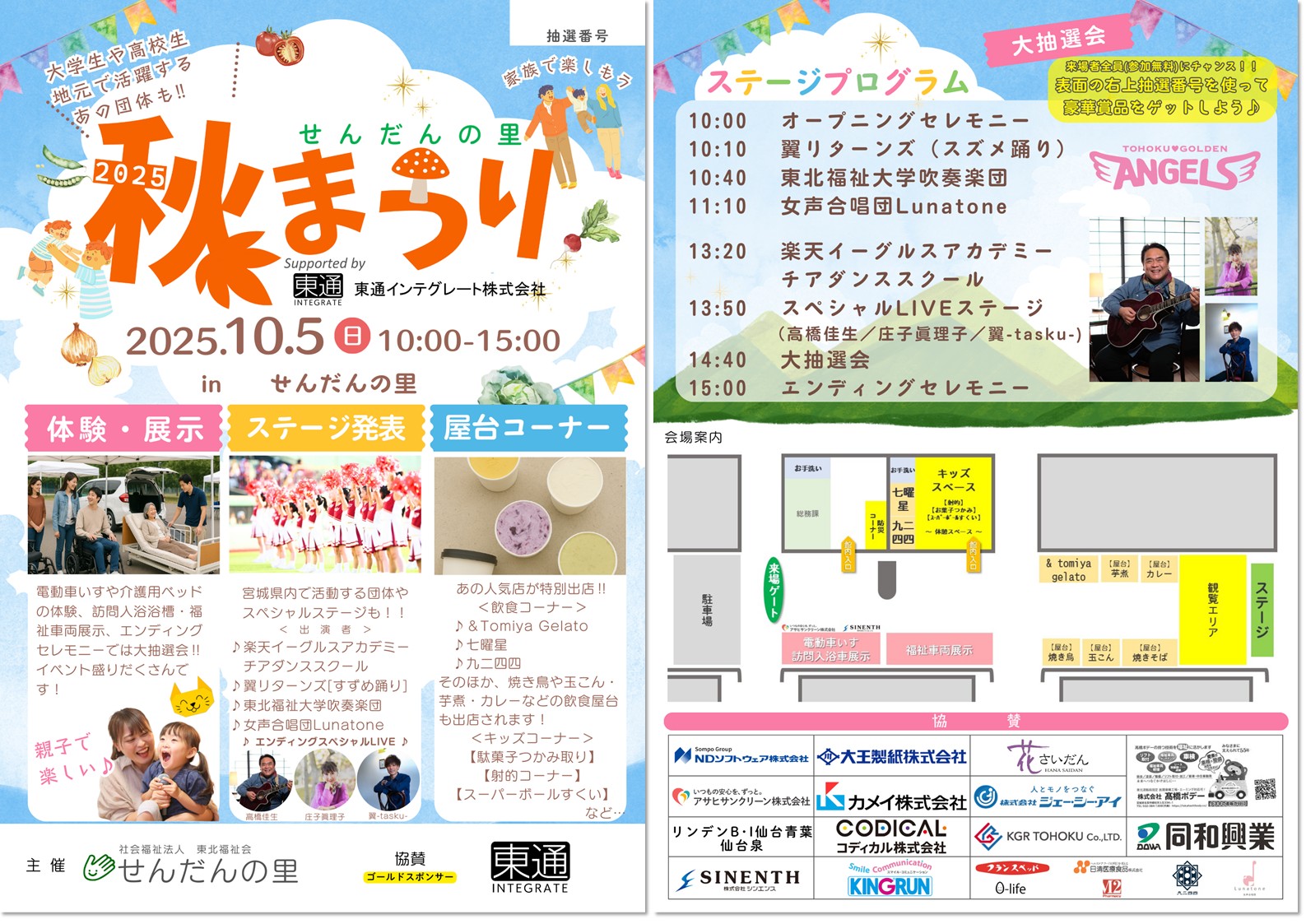 また、今週末にはいよいよ“せんだんの里2025秋祭り”が開催されます。楽しい催しやキッズコーナー、飲食ブースもありますので、多くの皆さまのお越しを心よりお待ちしております。
