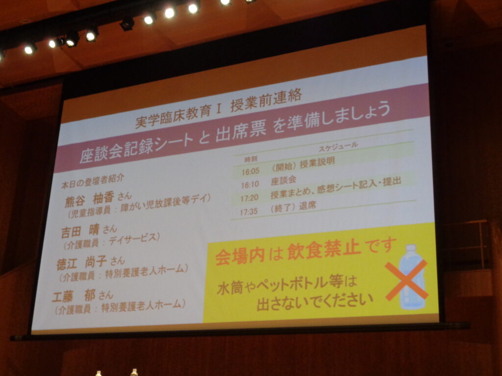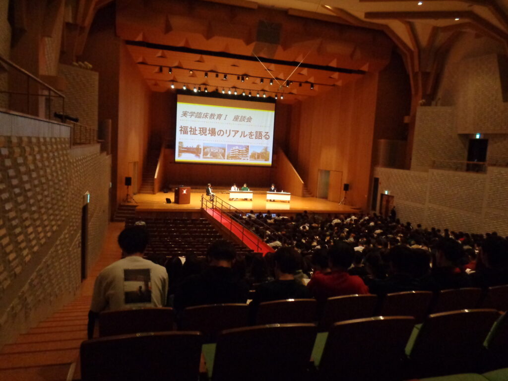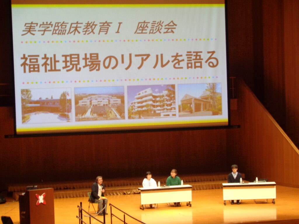 東北福祉大学 実学臨床教育Ⅰ履修生を対象に国見キャンパス音楽堂(けやきホール)で開催された座談会にせんだんの里に今年度入職した内の2名が登壇者として参加しました。