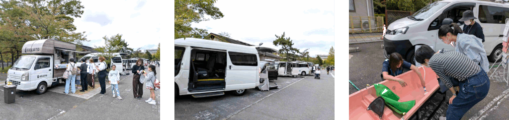 会場では、模擬店やゲームコーナーに加え、電動車いすの体験コーナーや訪問入浴車両の展示など、福祉に親しむ・触れる企画展示も行われました。