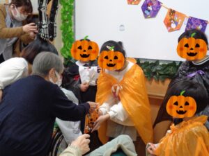 せんだんの里のお隣にある「遊杜家」さんから子どもたちが仮装をして遊びに来てくれました😍