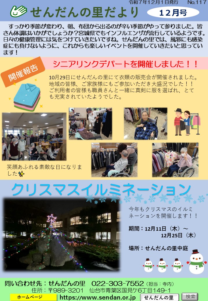 表面には、10月に開催しましたシニアリンクデパートの報告とクリスマスイルミネーション開催のご案内です。