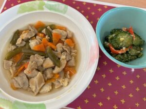 今回は、ご利用者が召し上がりやすいように、唐辛子は使用せずに「赤ピーマン」で代替えして色味を再現しました!!