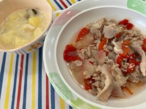 「豚肉と野菜の煮込み料理」              「チーズ煮込み」