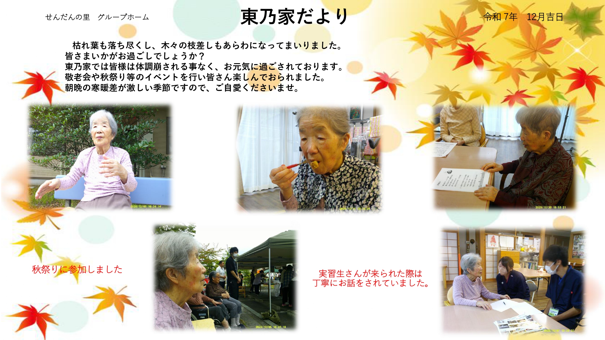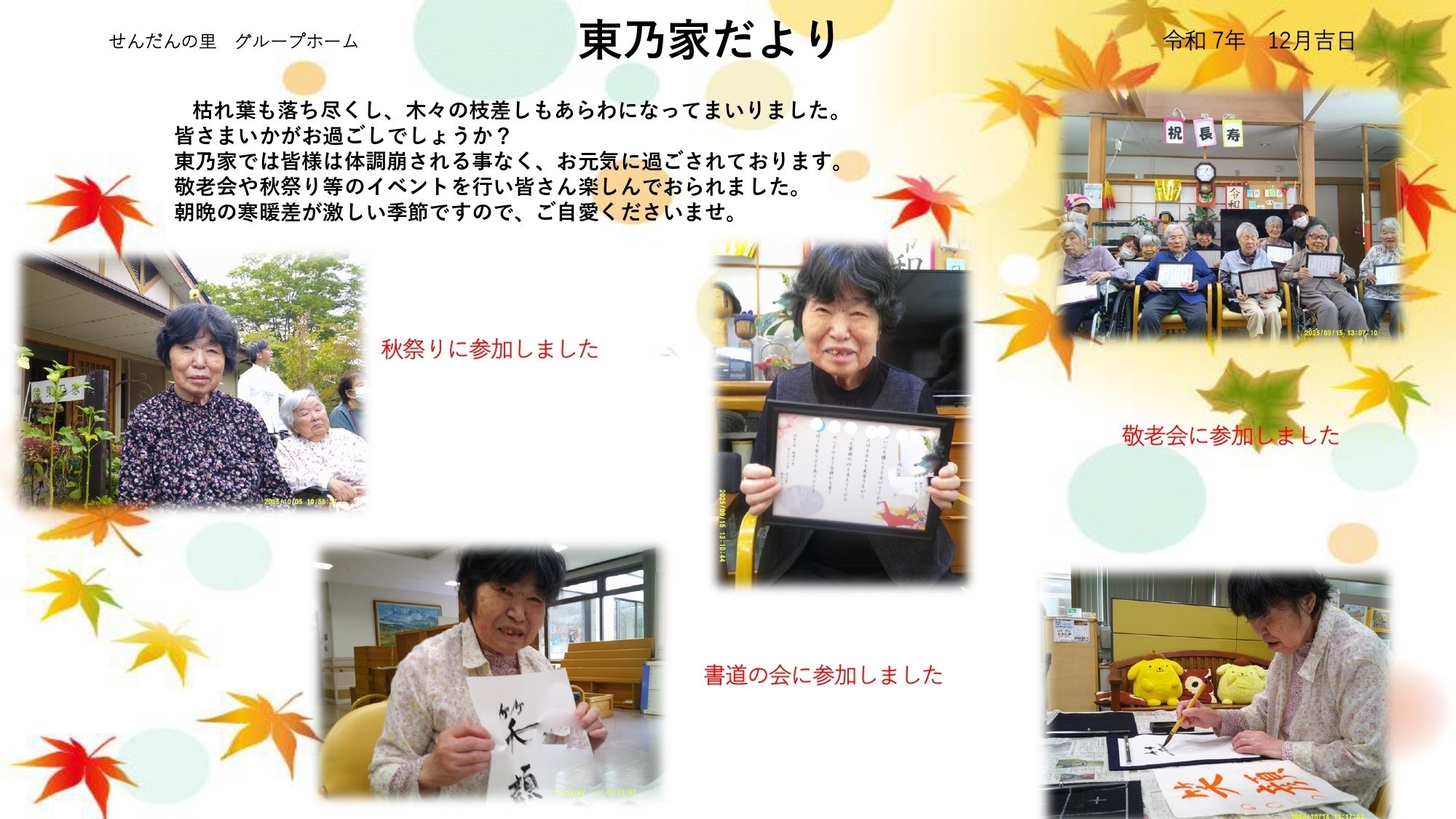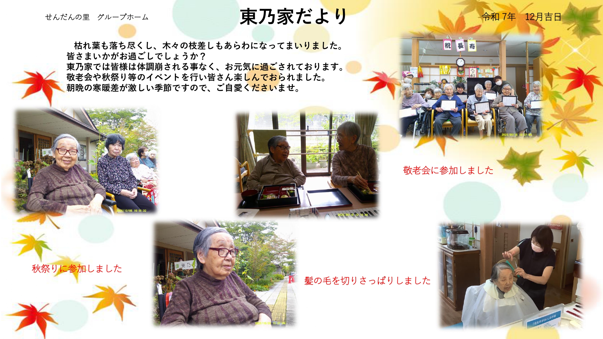 グループホーム東乃家の「東乃家だより」12月号を発行しました📰