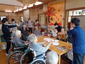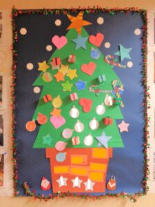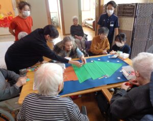 配属先のユニットにてご利用者の皆様と一緒にクリスマスツリーの壁画を作りました!