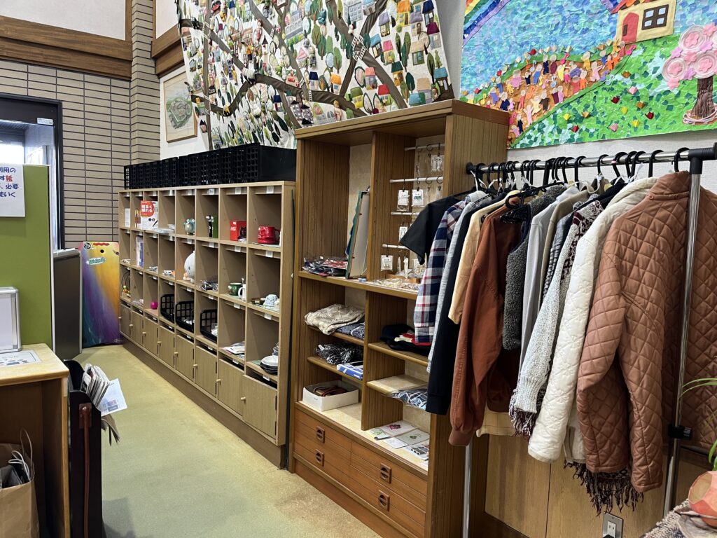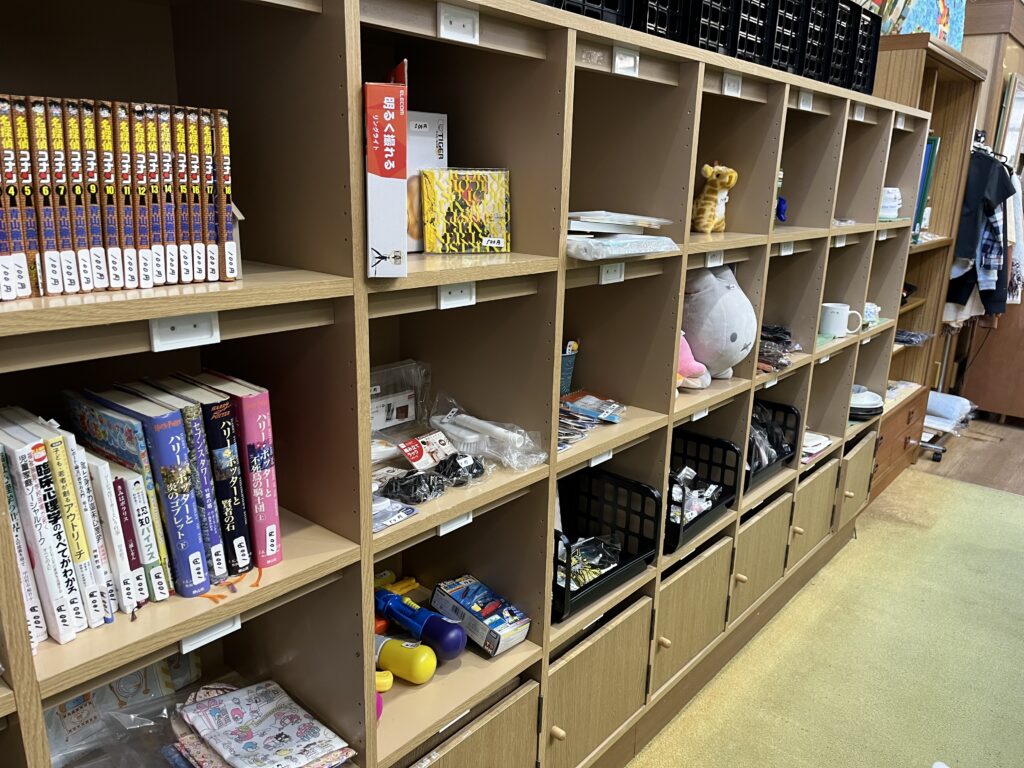 当初は職員が自宅から持ち寄った不要品から始まりましたが、現在ではご利用者・ご家族・地域の皆さまにもご協力いただき、多彩な品物が並ぶコーナーへと成長しています。