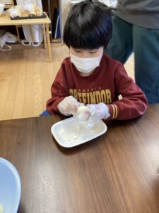 こちらは材料をビニール袋に入れ、袋の上から揉んで混ぜていました!